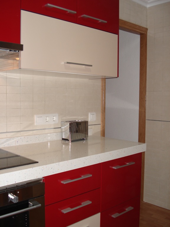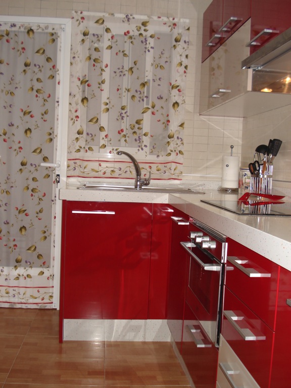 Este proyecto tiene como peculiaridad la de que la cocina esta en el centro de la vivienda sirviendo de unión la zona de dÃa con la zona de noche por lo que la idea que tuve fue la de darle viveza al lugar mediante el color rojo.